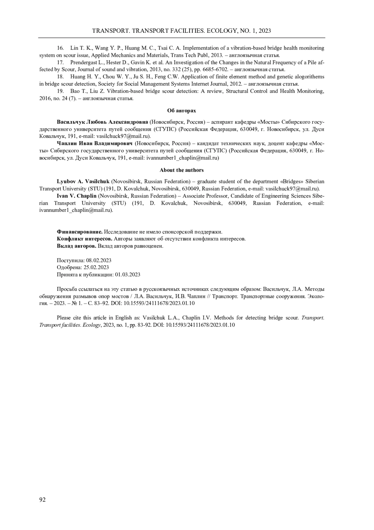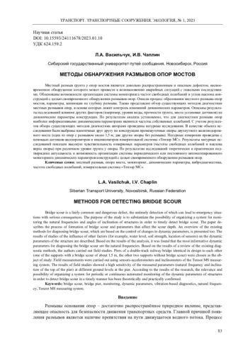 ПОЛЯКОВА Л. А., ЧАПЛИН И. В. МЕТОДЫ ОБНАРУЖЕНИЯ РАЗМЫВОВ ОПОР МОСТОВ // ТРАНСПОРТ. ТРАНСПОРТНЫЕ СООРУЖЕНИЯ. ЭКОЛОГИЯ. 2023. № 1