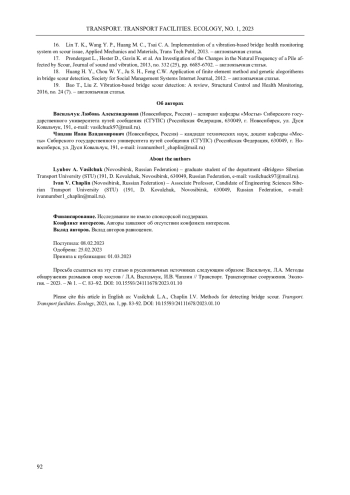 Журнал: ТРАНСПОРТ. ТРАНСПОРТНЫЕ СООРУЖЕНИЯ. ЭКОЛОГИЯ