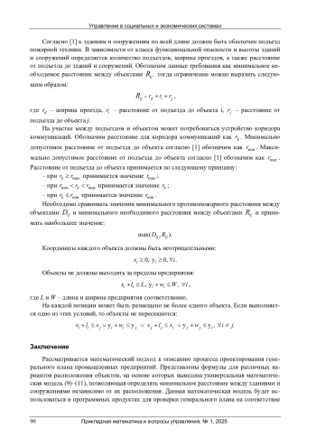 Создание генерального плана является ответственным этапом при проектировании промышленного предприятия. На практике для расстановки объектов на плане (зданий, сооружений и т. д.) используется ручной подход, при котором проектировщики самостоятельно размещают объекты. Создание проекта является творческим процессом, а количество вариантов проектирования может быть достаточно большим. Фактически формируются и сравниваются между собой лишь несколько альтернативных вариантов компоновки, из которых в дальнейшем выбирается наилучший. Однако этот выбор нередко основывается на субъективном мнении специалиста и не всегда гарантирует оптимальное решение. Кроме того, оценка вариантов и принятие окончательного решения зависят от квалификации и опыта задействованных инженеров. В связи с этим необходимо автоматизировать этот процесс для создания более качественных проектов за более короткий срок. Цель данной работы - описать формирование генерального плана с математической точки зрения и создать универсальную математическую модель, подходящую для всех возможных вариантов расположения объектов относительно друг друга. На основе полученных результатов данной работы в будущих исследованиях можно будет определить оптимальные численные методы для размещения объектов на генеральном плане. Эффективность применения методов оптимизации зависит от точности математических моделей, используемых для описания задачи. Модели должны точно отражать все ключевые аспекты реальной ситуации, чтобы результаты оптимизации были пригодны для практического использования.