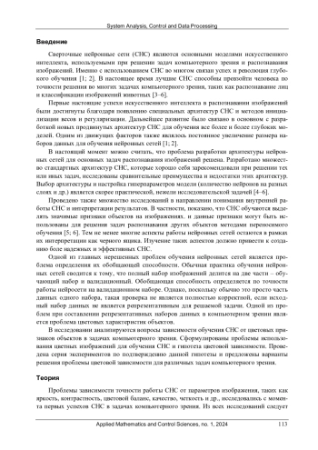 Ключевые фразы: сверточная нейронная сеть, глубокое обучение, компьютерное зрение, цветовая зависимость, распознавание изображений