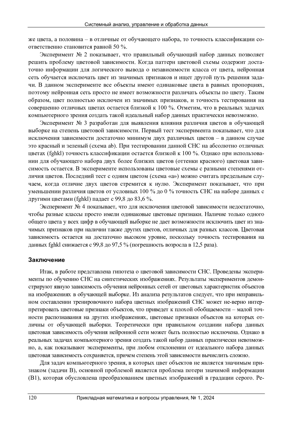 Статья: ИССЛЕДОВАНИЕ ЦВЕТОВОЙ ЗАВИСИМОСТИ СВЕРТОЧНЫХ НЕЙРОННЫХ СЕТЕЙ В ЗАДАЧАХ КОМПЬЮТЕРНОГО ЗРЕНИЯ (2024)