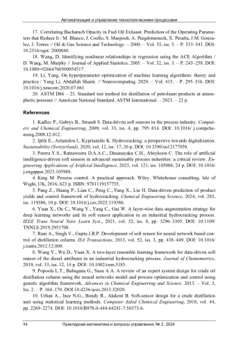 1. Kadlec, P. Data-driven soft sensors in the process industry / P. Kadlec, B. Gabrys, S. Strandt // Computers and Chemical Engineering. 2009. - Vol. 33, iss. 4. - P. 795-814. DOI: 10.1016/j.compchemeng.2008.12.012