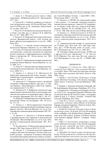 Историческая лексикология является важной областью, которая помогает понять процессы, происходящие в языке. В рамках данного исследования проводится эксперимент по системной стратификации лексики текста, который направлен на изучение истории лексическо-семантической системы русского языка. Целью эксперимента является анализ того, какие слова входят в ядро лексики языка, а какие являются периферийными. В статье предлагаются конкретные методы и инструменты, которые позволяют провести параметрический анализ лексики русского языка на основе текстов. Эти методы и инструменты позволяют определить наиболее употребляемые слова, их вклад в формирование лексической системы и выделить слова с наибольшей семантической значимостью в русском языке. Также они позволяют понять, как эта лексическая система менялась со временем и влияла на развитие языка. Параметрический анализ лексики по текстам основан на сборе и анализе текстового материала при помощи компьютерных инструментов и включает в себя измерение веса лексико-семантических единиц по основным параметрам, а именно: функциональному, синтагматическому, деривационному (эпидигматическому) и парадигматическому. Благодаря этим методам и инструментам становится возможным более точно оценить изменения в лексической системе языка и выделить ключевые моменты развития. Историческая лексикология и параметрический анализ лексики по текстам являются важными инструментами, которые помогают лучше понять язык в его текущем развитии, а также его эволюцию. Эти исследования дают возможность глубже проникнуть в суть языка и его изменений со временем.