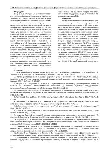 18. Руколь В. М., Макеенко Е. В., Ховайло В. А.Эффективность применения препарата “Мастовет” при лечении крупного рогатого скота с язвой пальцев // Ученые записки учреждения образования Витебская ордена Знак почета государственная академия ветеринарной медицины. 2023. Т. 59. №1. С. 35-38. EDN: OVRNAU