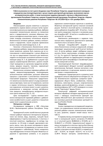 Сбалансировать рацион животных и улучшить усвояемость кормов можно успешно путем применения функциональных кормовых добавок. Добавки оказывают положительное влияние на показатели роста и продуктивности, усиливая обменные процессы в желудочно-кишечном тракте, а также увеличивая площадь всасывания питательных веществ. Биологически активные добавки, являясь нетоксичными и недорогими, нашли широкое применение во всех отраслях животноводства [1, 2, 3].