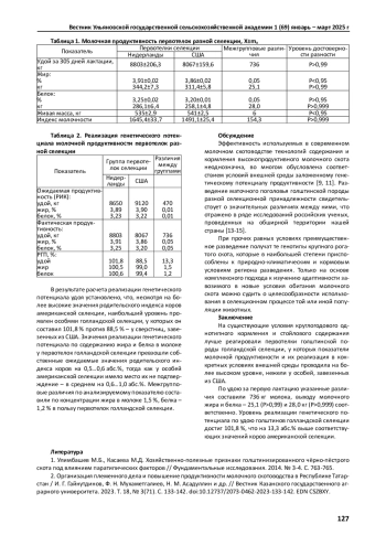 11. Молочная продуктивность коров-первотелок черно-пестрой, голштинской пород разной селекции и их помесей / Ю. А. Юлдашбаев, В.И. Косилов, Б. Т. Кадралиева и др. // Вестник Башкирского государственного аграрного университета. 2022. № 2 (62). С. 107-112. DOI: 10.31563/1684-7628-2022-62-2-107-112 EDN: AWUHOU