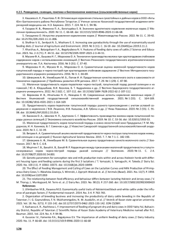 2. Организация племенного дела и повышение продуктивности молочного скотоводства в Республике Татарстан / И. Г. Гайнутдинов, Ф. Н. Мухаметгалиев, Н. М. Асадуллин и др. // Вестник Казанского государственного аграрного университета. 2023. Т. 18, № 3(71). С. 133-142. DOI: 10.12737/2073-0462-2023-133-142 EDN: CSZBXY