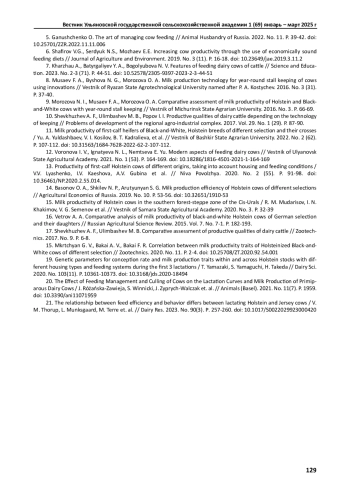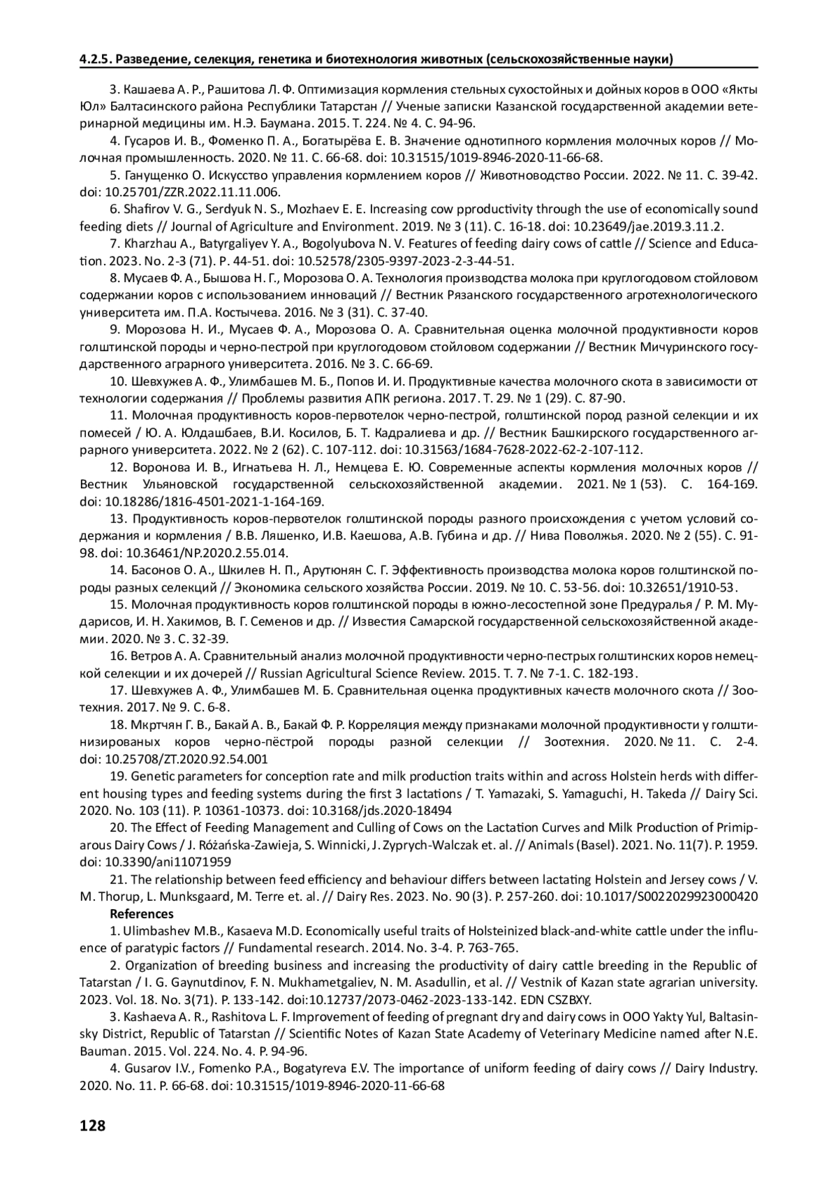 7. Kharzhau A., Batyrgaliyev Y. A., Bogolyubova N. V. Features of feeding dairy cows of cattle // Science and Education. 2023. No. 2-3 (71). P. 44-51. DOI: 10.52578/2305-9397-2023-2-3-44-51