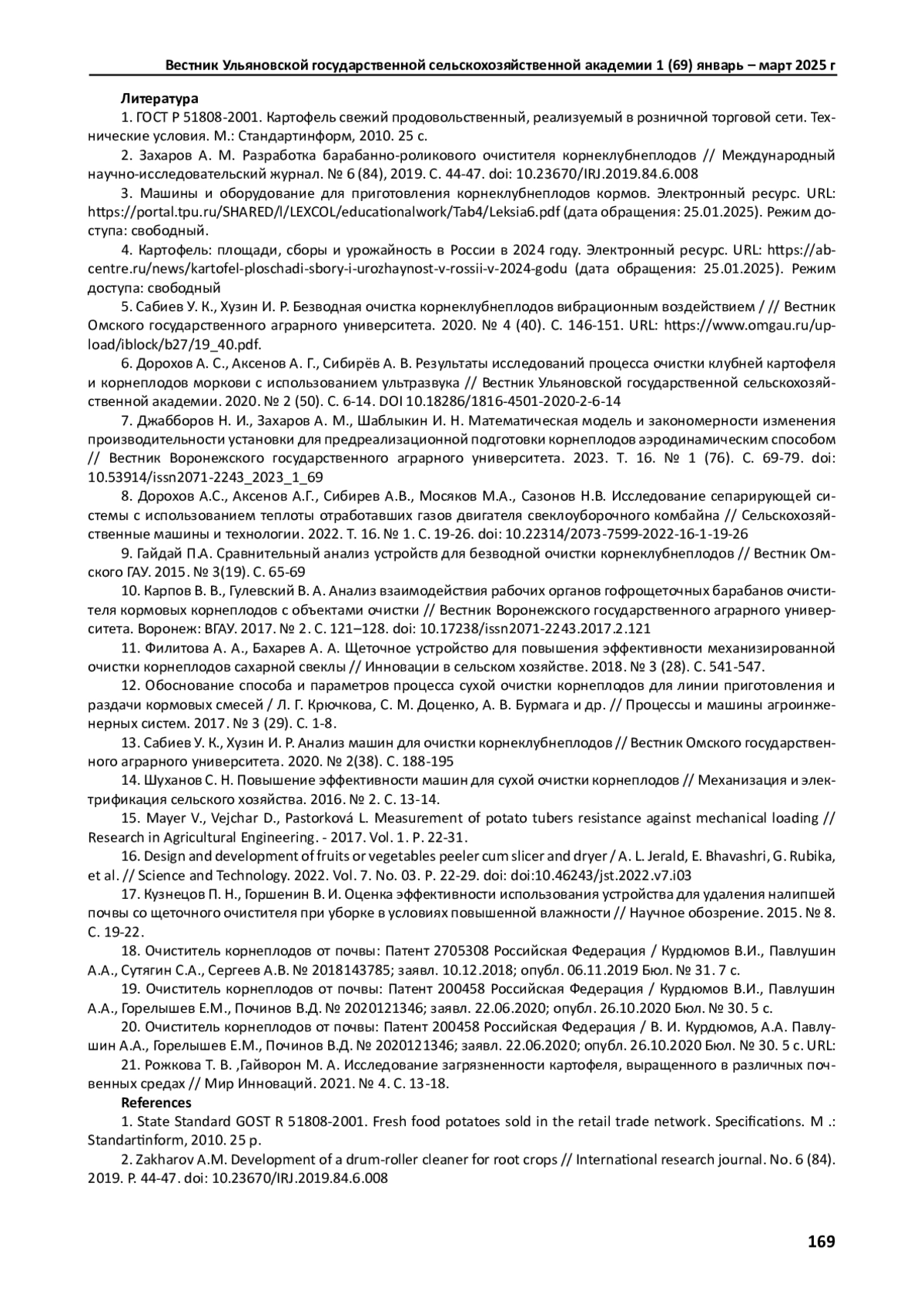 АГЕЕВ П. С., ГОРЕЛЫШЕВ Е. М., КУРДЮМОВ В. И., ПАВЛУШИН А. А. ОСОБЕННОСТИ КИНЕМАТИКИ КЛУБНЕЙ КАРТОФЕЛЯ НА ФИГУРНЫХ РОЛИКАХ ОЧИСТИТЕЛЯ КОРНЕПЛОДОВ ОТ ПОЧВЫ // ВЕСТНИК УЛЬЯНОВСКОЙ ГОСУДАРСТВЕННОЙ СЕЛЬСКОХОЗЯЙСТВЕННОЙ АКАДЕМИИ. 2025. № 1 (69)