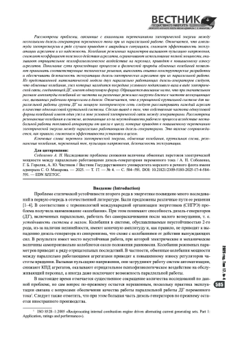 5. Горелик Г. Б. Проблема обменных колебаний электрической мощности при параллельной работе дизель-генераторов на долевых нагрузках с точки зрения экономики и надежности / Г. Б. Горелик // Актуальные проблемы создания и эксплуатации комбинированных двигателей внутреннего сгорания: материалы международной конференции «Двигатели 2002». - Вып. 2. - Хабаровск: Изд-во Хабар. гос. техн. ун-та, 2002. - С. 162-166.