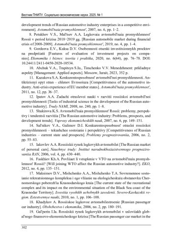 13. Шакирова, К.С. Автомобильная промышленность России: проблемы, перспективы и тенденции развития / К.С. Шакирова // Вопросы экономических наук. - 2007. - № 6. - С. 149-151. EDN: JUBHIT