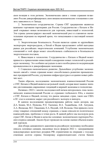 Актуальность темы экономических взаимоотношений России со странами глобального Юга, со странами Содружества Независимых Государств (далее СНГ), Китаем и Индией, обусловлена несколькими факторами: