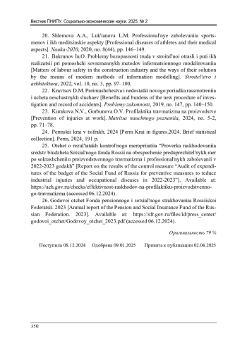 25. Отчет о результатах контрольного мероприятия “Проверка расходования средств бюджета Социального фонда России на обеспечение предупредительных мер по сокращению производственного травматизма и профессиональных заболеваний в 2022-2023 годах” [Электронный ресурс]. - URL: https://ach.gov.ru/checks/effektivnost-raskhodov-na-profilaktiku-proizvodstvennogo-travmatizma (дата обращения: 06.12.2024).