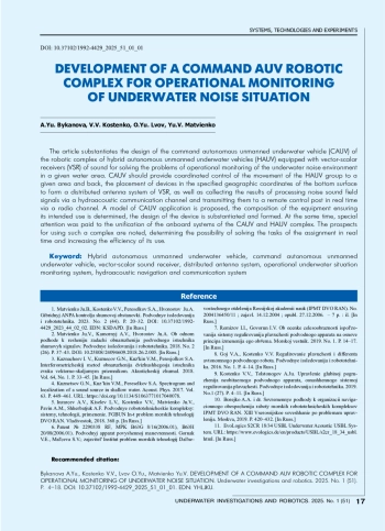 1. Матвиенко Ю.B., Костенко В.В., Переселков С.А., Хворостов Ю.А. Гибридный АНПА контроля шумовой обстановки // Подводные исследования и робототехника. 2023. № 2 (44). С. 20-32. DOI: 10.37102/1992-4429_2023_44_02_02