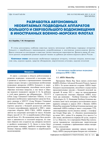 Статья: РАЗРАБОТКА АВТОНОМНЫХ НЕОБИТАЕМЫХ ПОДВОДНЫХ АППАРАТОВ БОЛЬШОГО И СВЕРХБОЛЬШОГО ВОДОИЗМЕЩЕНИЯ В ИНОСТРАННЫХ ВОЕННО-МОРСКИХ ФЛОТАХ (2025)