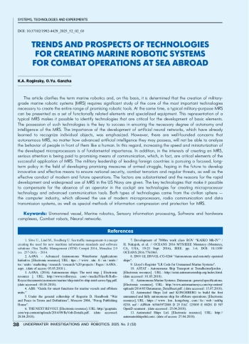 101. Bocharov L. Unmanned underwater vehicles: status and general development trends // Electronics: science, technology, business. - 2009. - No. 7. - P. 62-69.