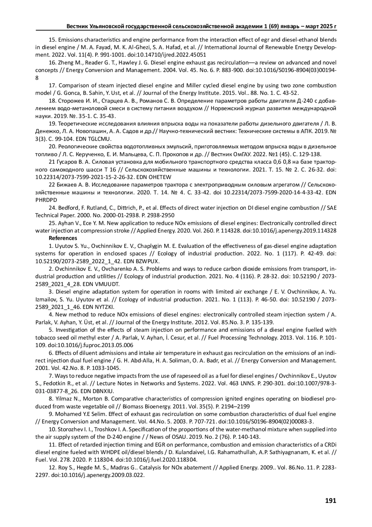 7. Ways to reduce negative impacts from the use of rapeseed oil as a fuel for diesel engines / Ovchinnikov E., Uyutov S., Fedotkin R., et al. // Lecture Notes in Networks and Systems. 2022. Vol. 463 LNNS. P. 290-301. DOI: 10.1007/978-3-031-03877-8_26 EDN: DBNXIU