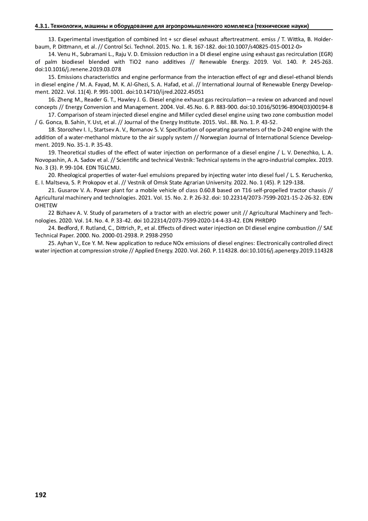 19. Теоретические исследования влияния впрыска воды на показатели работы дизельного двигателя / Л. В. Денежко, Л. А. Новопашин, А. А. Садов и др.// Научно-технический вестник: Технические системы в АПК. 2019. № 3(3). С. 99-104. EDN: TGLCMU