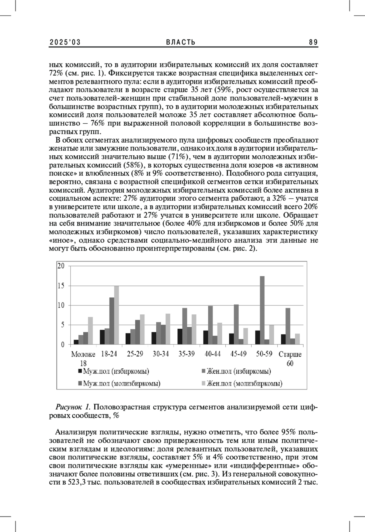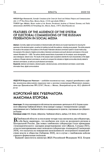 В настоящее время цифровые коммуникации избирательных органов с гражданами имеют большое значение для обеспечения открытости электоральной системы, а также формирования доверия со стороны аудитории, в т. ч. молодежи. В статье представлены результаты анализа аудитории системы избирательных комиссий Российской Федерации в социальных медиа на примере сети цифровых сообществ избирательных комиссий и молодежных избирательных комиссий в социальной сети ВКонтакте (N = 1 020). Авторы выделили несколько блоков параметров для проведения анализа: социально-демографический, ценностно-идеологический, сетевой. Результаты анализа позволили выделить основные характеристики цифровой аудитории российских избиркомов, а также провести сопоставление между показателями цифровых сообществ, относящихся непосредственно к избирательным комиссиям, а также к молодежным избирательным комиссиям.