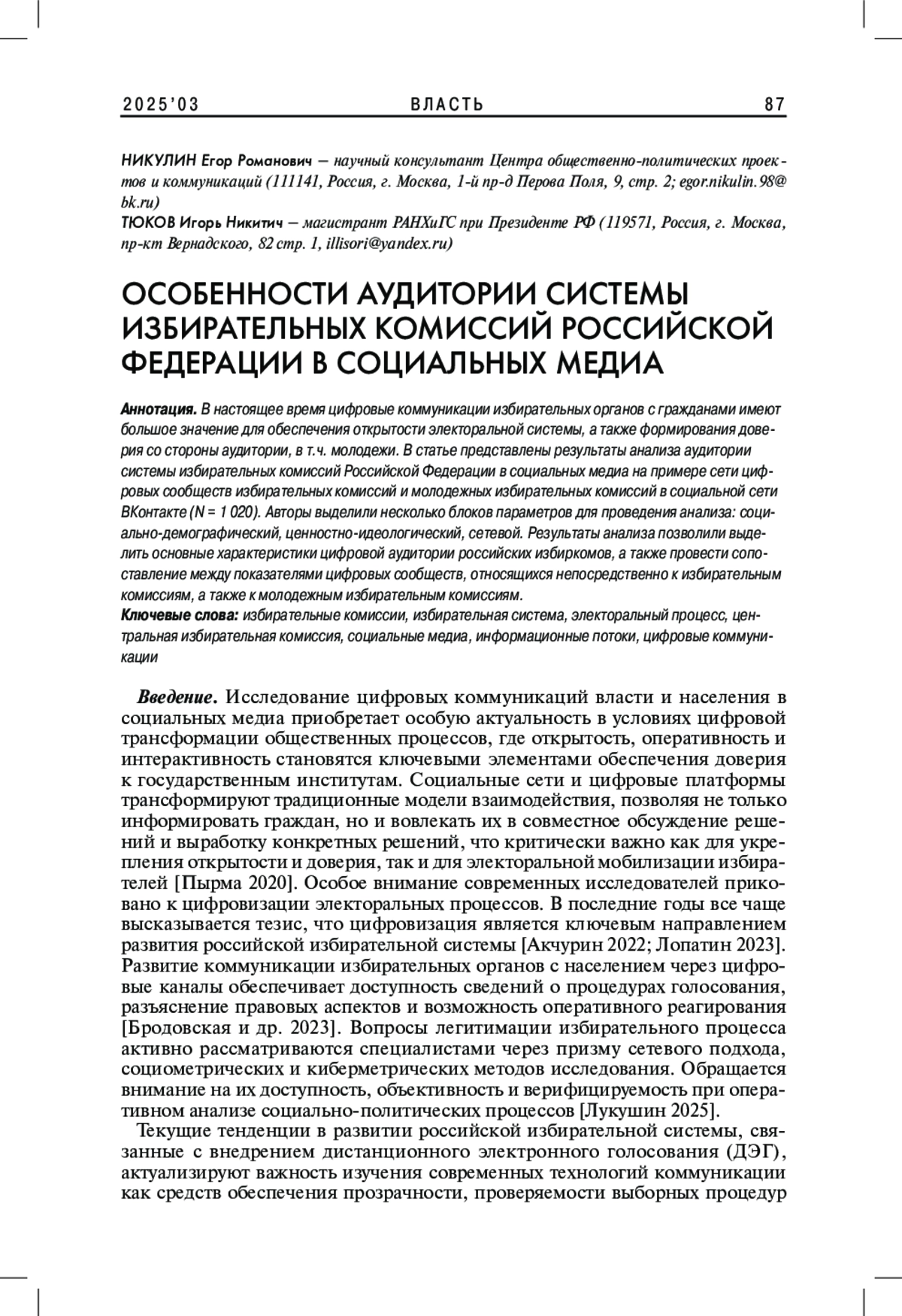 8. Пырма Р.В. 2020. Социальные сети и электоральное участие: возможности активации голосования. - Гражданин. Выборы. Власть. № 3(17). С. 9-32. EDN: UKBUOB