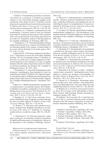 3. Юдина О. И. Паразитическая метафора в конструировании образа зла в творчестве Т. Пратчетта (на материале романов из серии “Discworld”) // Вестник Моск. ун-та. Сер. 19: Лингвистика и межкультурная коммуникация. 2019. № 3. С. 186-192.