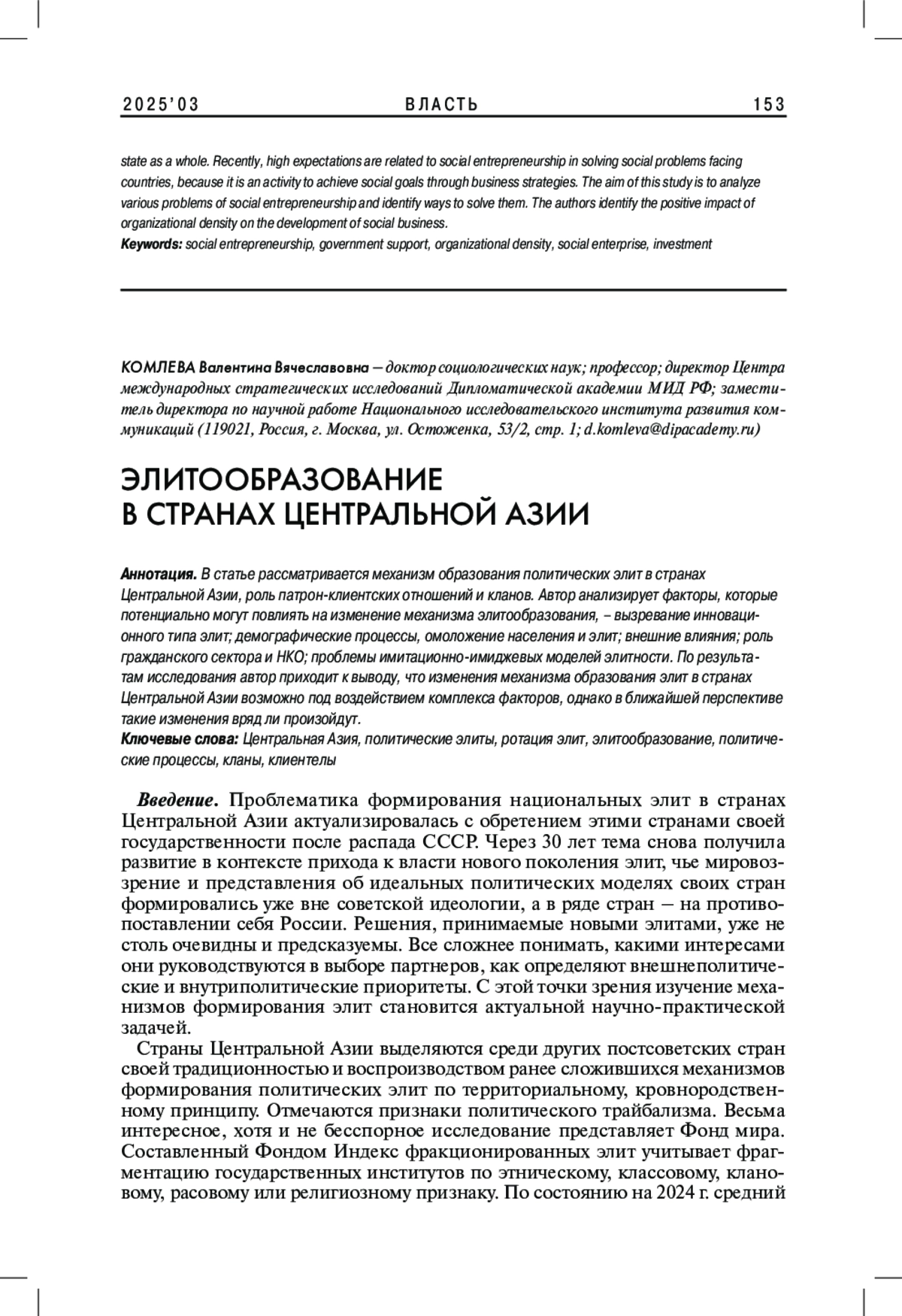 В статье рассматривается механизм образования политических элит в странах Центральной Азии, роль патрон-клиентских отношений и кланов. Автор анализирует факторы, которые потенциально могут повлиять на изменение механизма элитообразования, - вызревание инновационного типа элит; демографические процессы, омоложение населения и элит; внешние влияния; роль гражданского сектора и НКО; проблемы имитационно-имиджевых моделей элитности. По результатам исследования автор приходит к выводу, что изменения механизма образования элит в странах Центральной Азии возможно под воздействием комплекса факторов, однако в ближайшей перспективе такие изменения вряд ли произойдут.