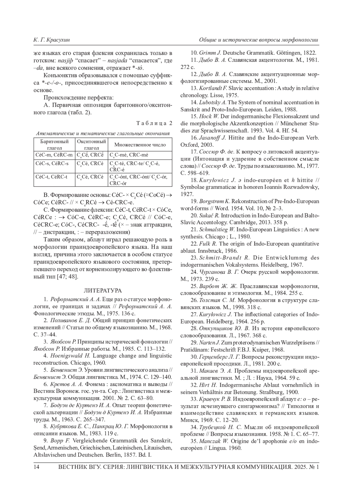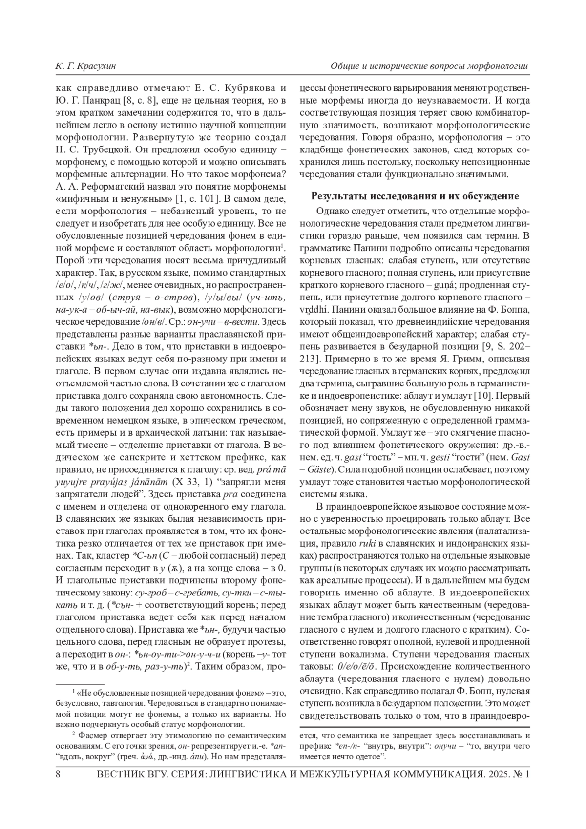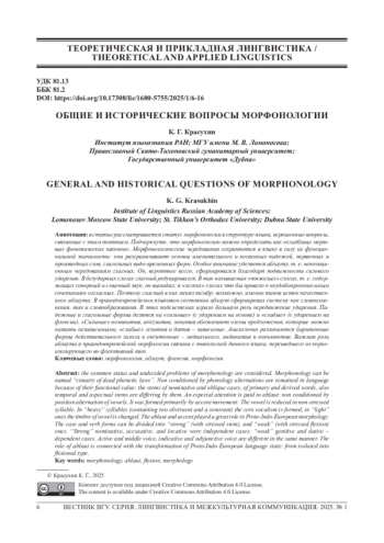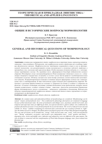 КРАСУХИН К. Г. ОБЩИЕ И ИСТОРИЧЕСКИЕ ВОПРОСЫ МОРФОНОЛОГИИ // ВЕСТНИК ВОРОНЕЖСКОГО ГОСУДАРСТВЕННОГО УНИВЕРСИТЕТА. СЕРИЯ: ЛИНГВИСТИКА И МЕЖКУЛЬТУРНАЯ КОММУНИКАЦИЯ. 2025. № 1