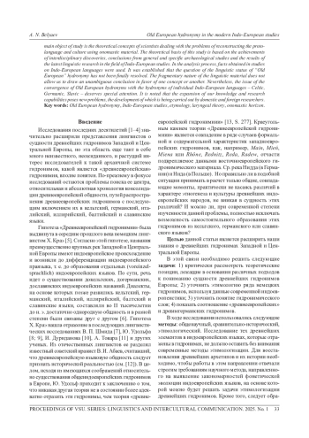 Ключевые фразы: древнеевропейские гидронимы, индоевропеистика, ЭТИМОЛОГИЯ, ларингальная теория, ономастический горизонт