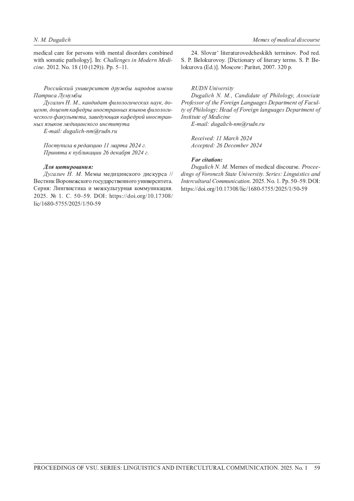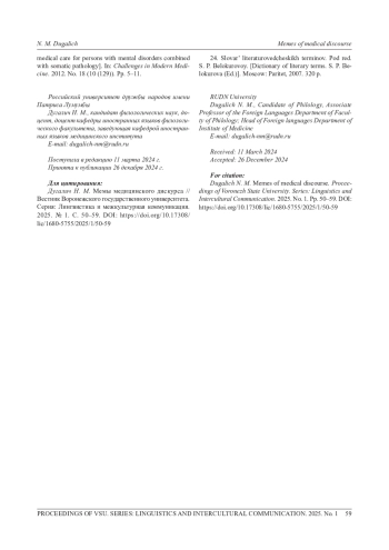 3. Жура В. В. Дискурсивная компетенция врача в устном медицинском общении: дис.. д-ра филол. наук. Волгоград, 2008. 48 с. EDN: QLRDUR