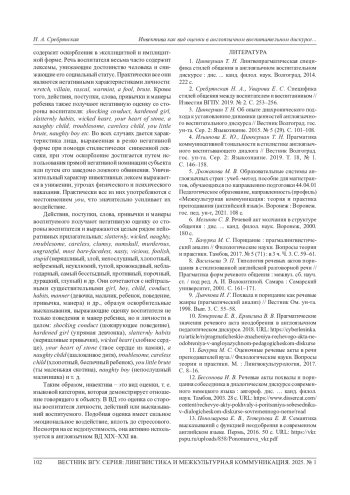 4. Ильинова Е. Ю., Цинкерман Т. Н. Прагматика коммуникативной тональности в стилистике англоязычного воспитывающего диалога // Вестник Волгоград, гос. ун-та. Сер. 2: Языкознание. 2019. Т. 18, № 1. С. 146-158. EDN: ZFAOMP