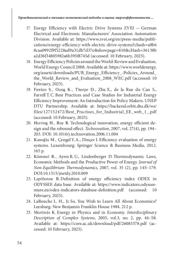 25. Mistry K. H., Lienhard J. H., V. An Economics-Based Second Law Efficiency // Entropy. 2013. Vol. 15. Pp. 2736-2765. 10.3390/ e15072736. DOI: 10.3390/e15072736