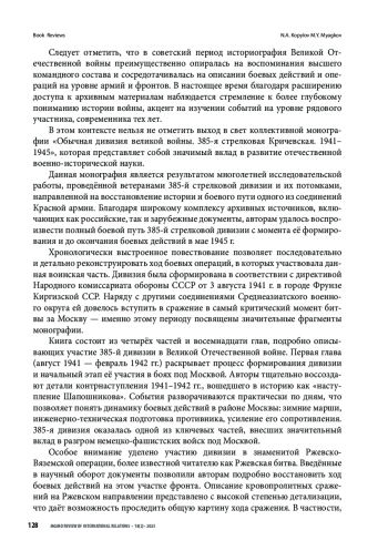 Рецензия на коллективную монографию: Буторина О. В., Ничиков А. В., Юновидов А. С. 2024. Обычная дивизия великой войны. 385-я стрелковая Кричевская. 1941–1945. Москва: Издательство «Весь Мир».