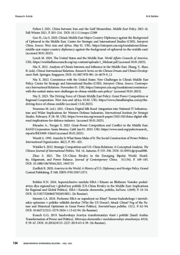7. Fulton J. 2021. China between Iran and the Gulf Monarchies. Middle East Policy. 28(3-4). Fall-Winter 2021. P. 203-216. https://doi.org/10.1111/mepo.12589