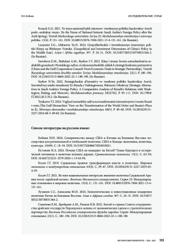 22. Косач Г.Г. 2021. Во имя национальных интересов: внешняя политика Саудовской Аравии после «арабской весны». Вестник Московского университета. Серия 25: Международные отношения и мировая политика. 13(4). С. 131-161. https://doi.org/10.48015/2076-7404-2021-13-4131-161.