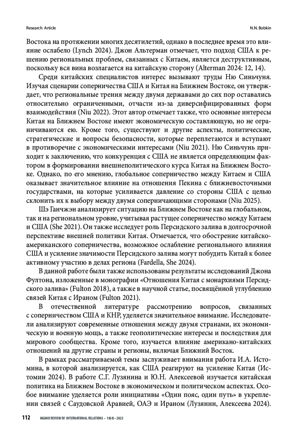 19. Бобкин Н.Н. 2024. Соперничество между США и Китаем на Ближнем Востоке: последствия для региональной и глобальной политики. США и Канада: экономика, политика, культура. 1(649). С. 18-34. https://doi.org/10.31857/S2686673024010021.
