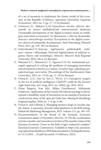 18. Franzo S. and Urbinati A. Managing resource loops in circular supply chains: A taxonomy of multi-sided platforms in the B2B setting // Industrial Marketing Management. 2023. Volume 115. Pp. 185-197.