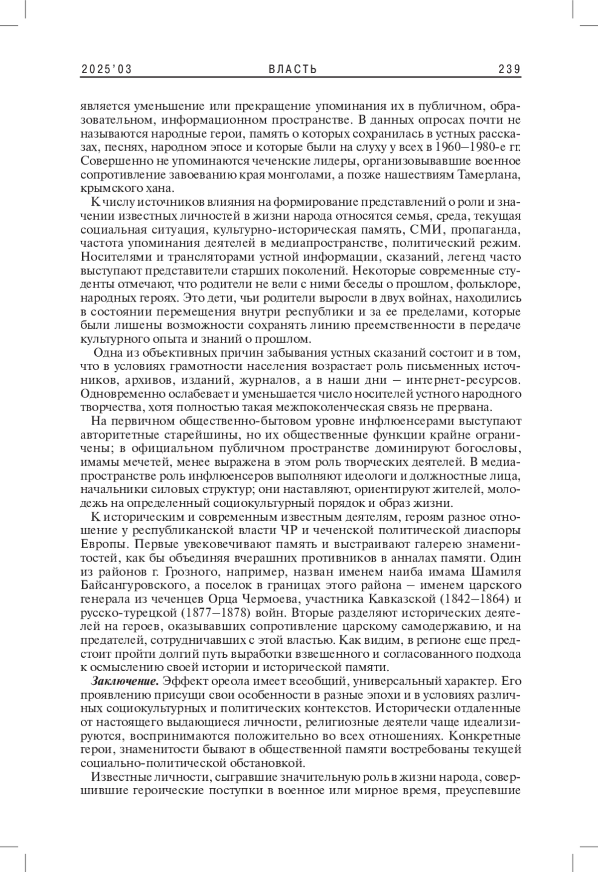 В статье рассматривается проявление эффекта ореола личности в социокультурных и политических условиях постконфликтного региона, раскрываются особенности действия данного эффекта на различных стадиях протекания конфликта. Автор выделяет взаимосвязанные структурные компоненты социокультурного контекста, определяет рейтинговую иерархию выдающихся личностей, меняющуюся с изменением социально-политической обстановки, устанавливает связь предпочтения знаменитости и политических взглядов респондентов. В статье характеризуется отношение к знаменитостям религиозной, военной, государственной сферы, выявляется ценностная мотивация их дифференцированного восприятия, определяются причины забвения одних и актуализации других героев, лидеров, обозначаются источники формирования представлений об исторических и современных деятелях.