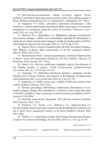 15. Инновационно-инвестиционная система северных регионов России: проблемы и перспективы / под ред. А.Г. Шеломенцева. - Архангельск, 2017. - 304 с.