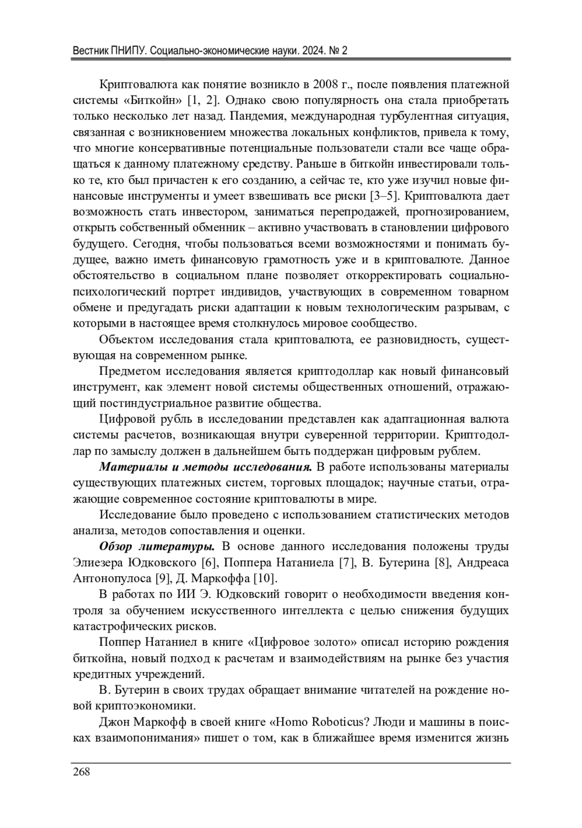 25. Резаев, А.В. Является ли криптовалюта проблемой для социолога? / А.В. Резаев // Телескоп: журнал социологических и маркетинговых исследований. - 2023. - № 3. - С. 53-60. DOI: 10.24412/1994-3776-2023-3-53-60 EDN: RDMPIU