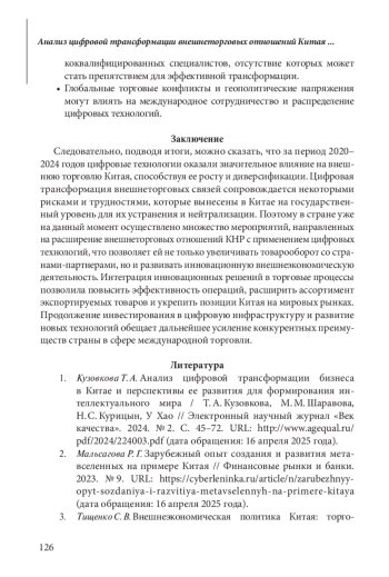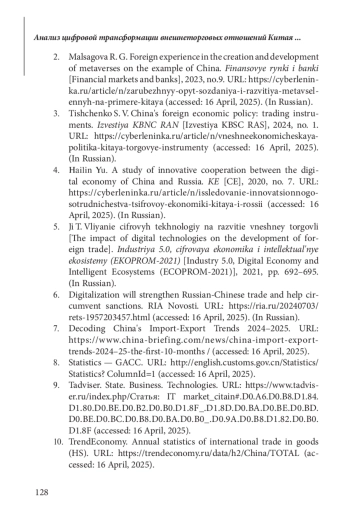 Статья: АНАЛИЗ ЦИФРОВОЙ ТРАНСФОРМАЦИИ ВНЕШНЕТОРГОВЫХ ОТНОШЕНИЙ КИТАЯ И ЕЕ ПЕРСПЕКТИВЫ (2025)