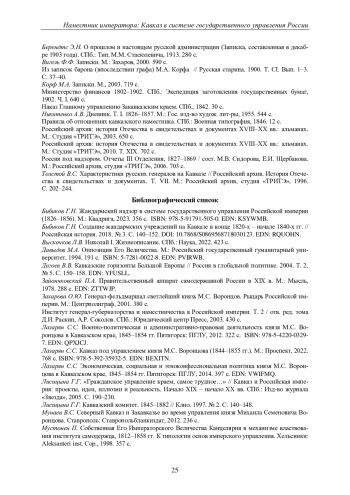 Статья: НАМЕСТНИК ИМПЕРАТОРА: КАВКАЗ В СИСТЕМЕ ГОСУДАРСТВЕННОГО УПРАВЛЕНИЯ НИКОЛАЕВСКОЙ РОССИИ (2025)