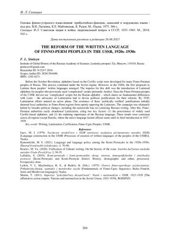 23. Каменских М.С. Язык и языковая политика у коми-пермяков в 1920-1930-е гг. // Журнал фронтирных исследований. 2021. № 4. С. 76-90. EDN: XBNMSZ