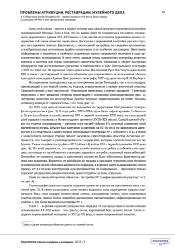 Цель этой статьи – ввести в оборот остатки еще одной детально изученной постройки средневековой Москвы. Дело в том, что до наших дней не сохранилось ни одного московского деревянного здания XVI–XVII веков; о том, как были устроены деревянные жилые сооружения той эпохи известно очень мало. Дискуссия о деревянной застройке русских городов того времени тянется, фактически, с эпохи самой застройки, но сведения письменных и изобразительных источников крайне ограничены и не особенно достоверны. Некоторую информацию о наземных и особенно, подземных частях сооружений получают в ходе археологических исследований. В силу этого, каждая вновь выявленная постройка является важным и ценным для науки подлинным свидетельством. Вводимая в оборот постройка обнаружена при исследованиях (раскопки и наблюдения) в зоне Центрального телеграфа с 2022 по 2024 год. Их проводил отдел археологии Московской Руси Института археологии РАН в связи с реставрацией и приспособлением для современного использования объекта культурного наследия «Здание Центрального телеграфа, 1927 год, архитектор И. И. Рерберг».