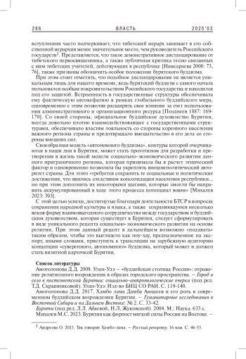 5. Намсараева С.Б. 2008. Политический аспект религиозной жизни современной Бурятии. - Религия в истории и культуре монголоязычных народов России (под ред. Н.Л. Жуковской). М.: Восточная литература. С. 58-87.