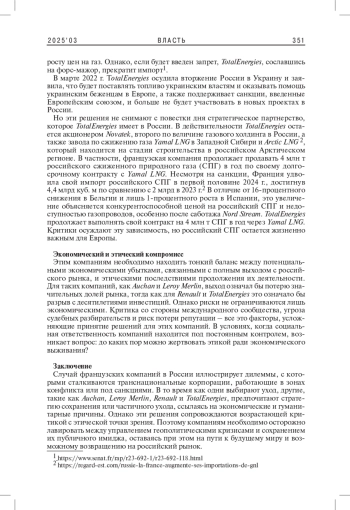 Статья освещает трудности, с которыми столкнулись французские компании, работающие в России, после начала конфликта с Украиной в 2022 г. Такие компании, как Auchan, Leroy Merlin, Renault и TotalEnergies, оказались перед выбором: уйти с российского рынка или продолжить деятельность, несмотря на санкции и общественное давление. Auchan и Leroy Merlin оправдывали свое присутствие заботой о рабочих местах и поставках жизненно важных товаров, однако столкнулись с критикой за возможное содействие российским военным усилиям. Renault, продав свои активы, оставила себе право на выкуп, а TotalEnergies, несмотря на поддержку санкций, продолжает работать в российских энергетических проектах. Статья подчеркивает сложность принятия решений в условиях конфликта между экономическими интересами и этическими стандартами.