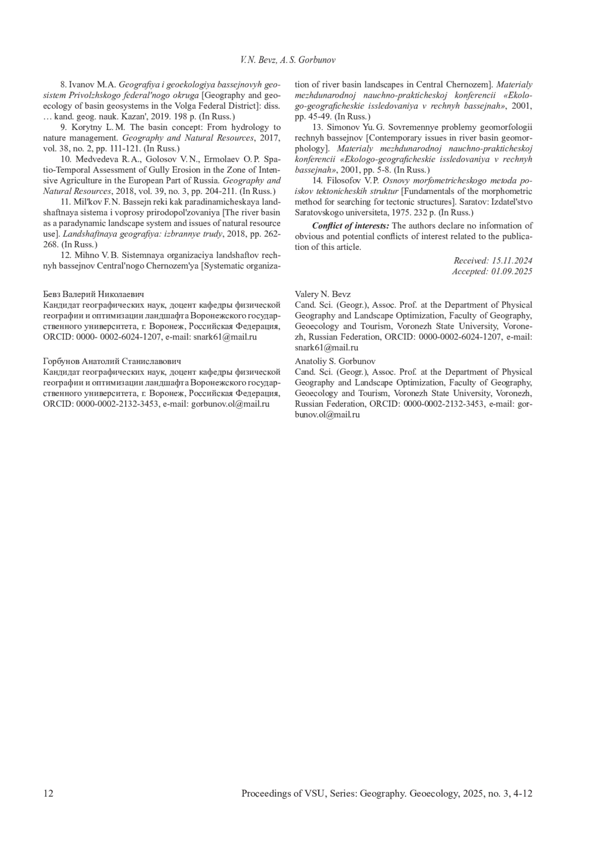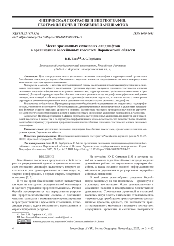 БЕВЗ В. Н., ГОРБУНОВ А. С. МЕСТО ЭРОЗИОННЫХ СКЛОНОВЫХ ЛАНДШАФТОВ В ОРГАНИЗАЦИИ БАССЕЙНОВЫХ ГЕОСИСТЕМ ВОРОНЕЖСКОЙ ОБЛАСТИ // ВЕСТНИК ВОРОНЕЖСКОГО ГОСУДАРСТВЕННОГО УНИВЕРСИТЕТА. СЕРИЯ: ГЕОГРАФИЯ. ГЕОЭКОЛОГИЯ. 2025. № 3