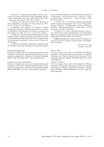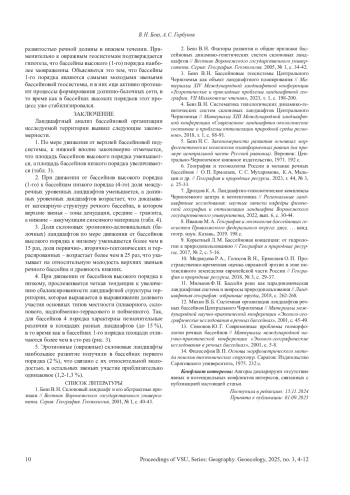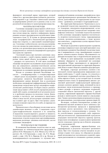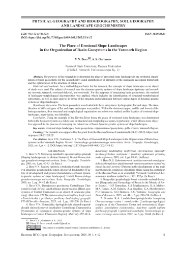 Статья: МЕСТО ЭРОЗИОННЫХ СКЛОНОВЫХ ЛАНДШАФТОВ В ОРГАНИЗАЦИИ БАССЕЙНОВЫХ ГЕОСИСТЕМ ВОРОНЕЖСКОЙ ОБЛАСТИ (2025)