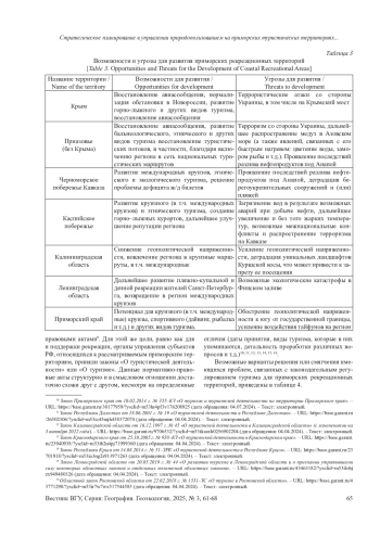 иза. Он проведен для всех перечисленных выше приморских территорий, особое внимание было уделено его территориальным аспектам. Материалы для него были получены благодаря аналитике имеющихся литературных и статистических данных, а также выездам на отдельные участки исследования. Для представления результатов SWOT-анализа был применен метод дедукции: вначале показаны общие результаты, далее раскрыты его территориальные аспекты.