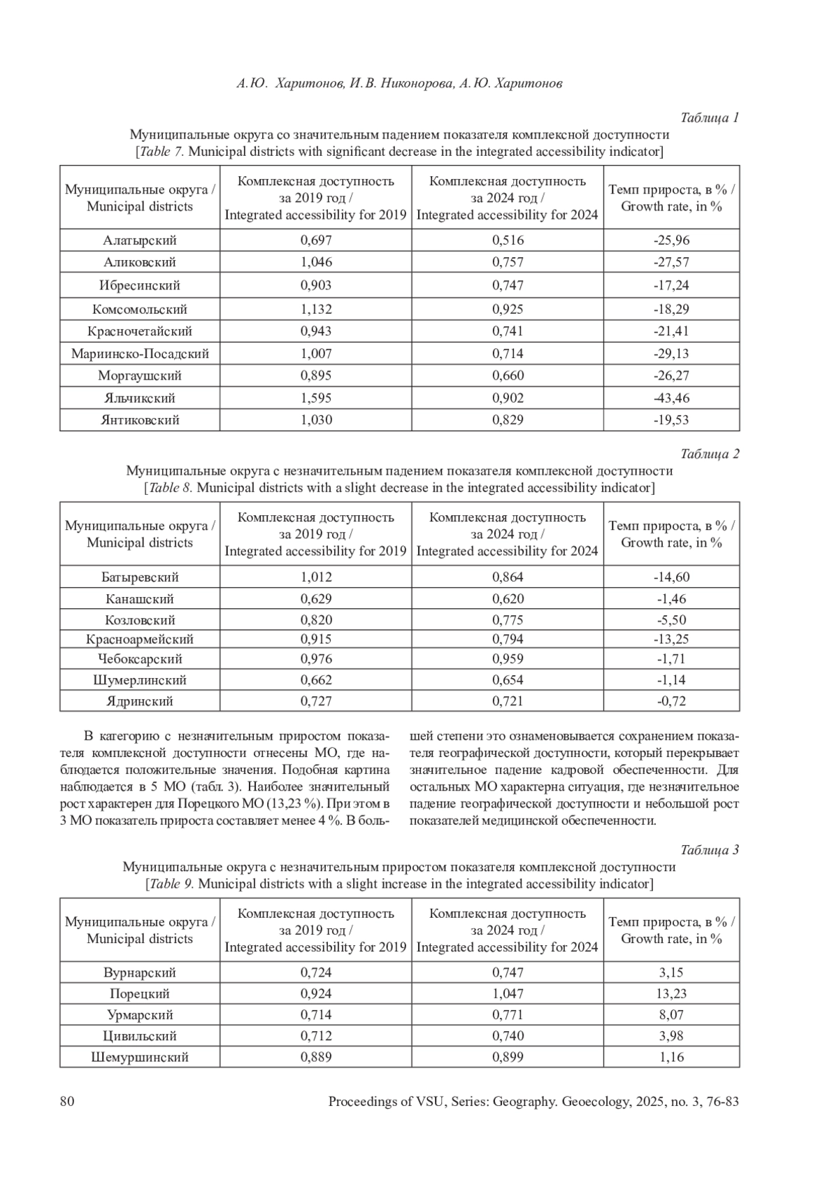 2. Анализ доступности первичной медицинской помощи для сельского населения Чувашской Республики / Ю.Р. Архипов, И. В. Никонорова, Ал.Ю. Харитонов, Ан.Ю. Харитонов II Региональные геосистемы, № 48 (4), с. 481-493.