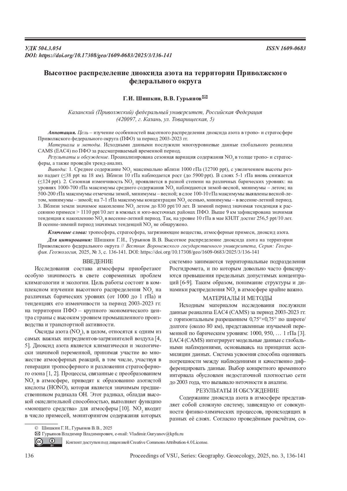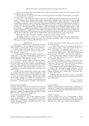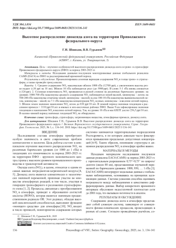 ГУРЬЯНОВ В. В., ШИШКИН Г. И. ВЫСОТНОЕ РАСПРЕДЕЛЕНИЕ ДИОКСИДА АЗОТА НА ТЕРРИТОРИИ ПРИВОЛЖСКОГО ФЕДЕРАЛЬНОГО ОКРУГА // ВЕСТНИК ВОРОНЕЖСКОГО ГОСУДАРСТВЕННОГО УНИВЕРСИТЕТА. СЕРИЯ: ГЕОГРАФИЯ. ГЕОЭКОЛОГИЯ. 2025. № 3